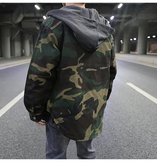 Vintage Camouflage Hooded Quilted Jacket for Men
